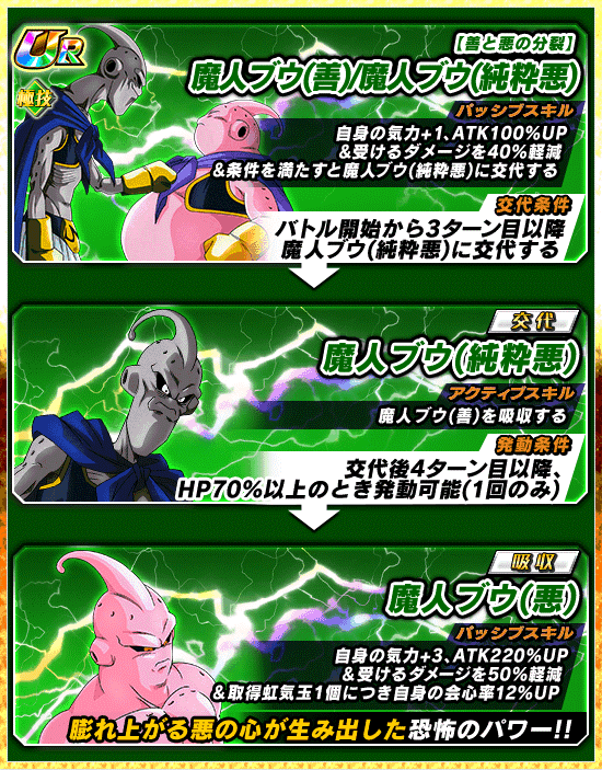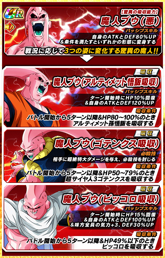 魔人ブウの形態と発動スキルが変化するぞ!!