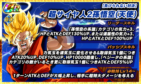 ※超サイヤ人2孫悟空(天使)に有効となります。