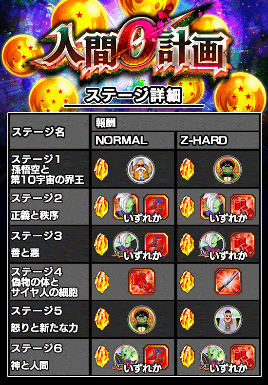 ステージ1〜6の各難易度クリアで