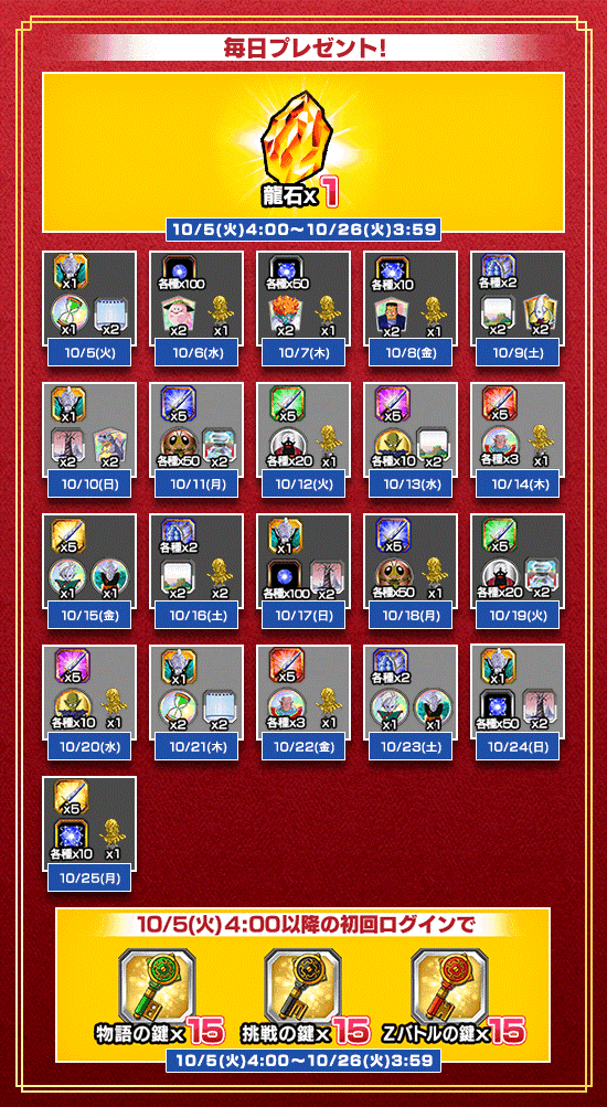 ※10/25(月)分のログインボーナス受取期限は