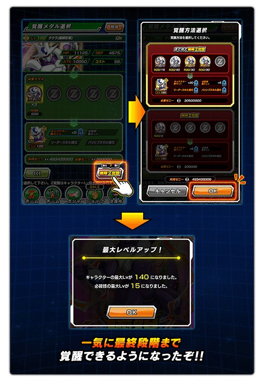 極限Z覚醒にて、複数段階の覚醒に必要な素材を