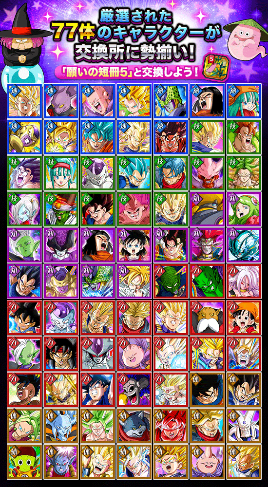 ・ラインナップキャラクターは「占いババの交換所」内の