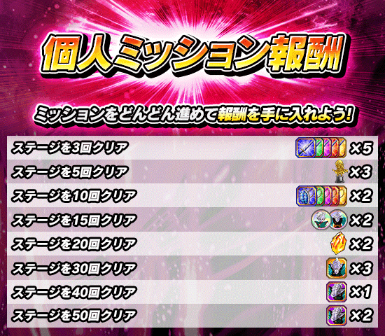 ※個人ミッション報酬はミッションを達成次第、