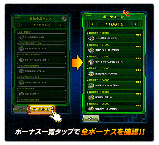 発動しているボーナスと、