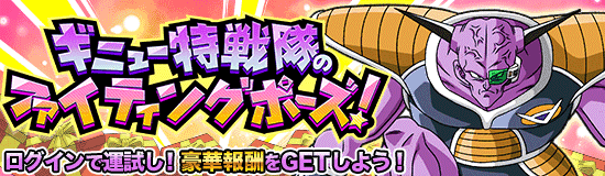 ギニュー特戦隊のポーズが決まれば報酬GET…!? 何が手に入るかはログインしてからのお楽しみ!!